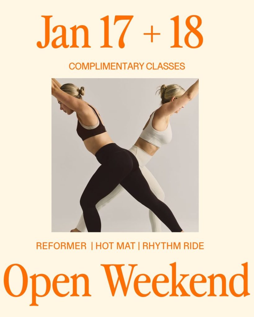 Feel the heat of the infrared-heated Hot Mat studio, experience the light-filled energy of Reformer Pilates, and sweat it out in the Ride studio – all on the house. Spots are live in the Happi app, so book early or join the waitlist.