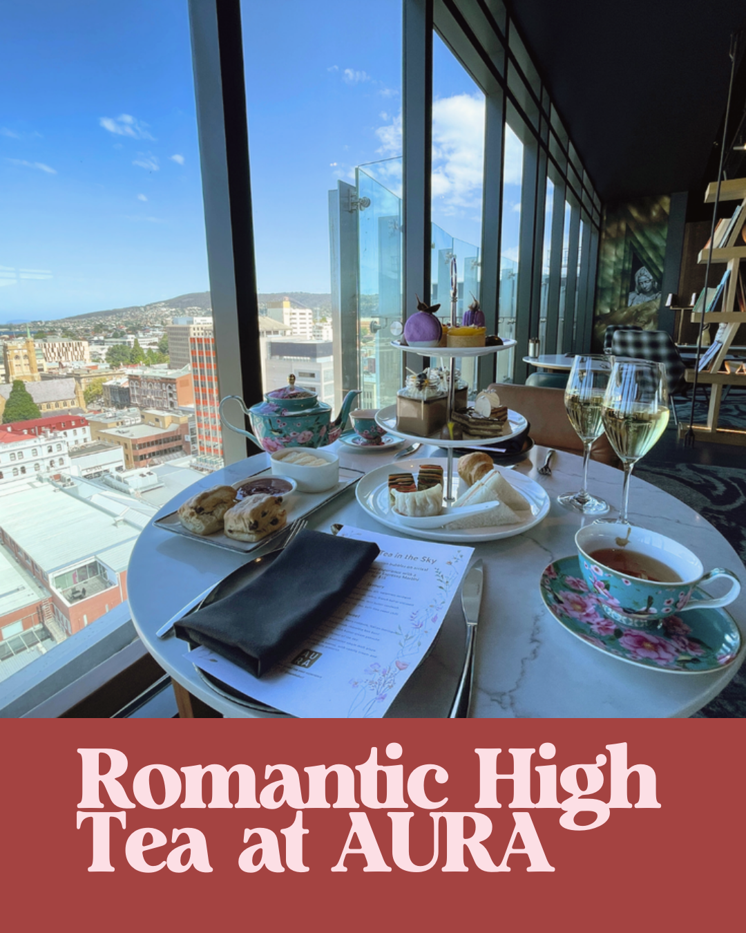 Located on level 12 with sweeping city, harbour and mountain views, AURAâs Sparkling High Tea is the perfect classy afternoon treat. Enjoy Tasmanian sparkling on arrival, handâmade delicacies from the pastry team, and premium teas or barista coffee, all for $69 per person. Book now.